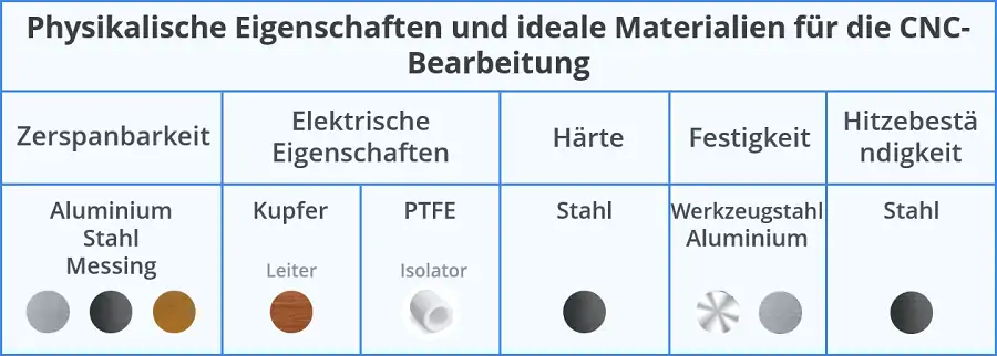 Welches Material für das jeweilige CNC-Fertigungsprojekt am besten geeignet ist hängt von mehreren Faktoren und Anforderungen ab. Brauchen Sie zum Beispiel ein Material mit hervorragenden mechanischen Eigenschaften? Oder ist die Produktionsgeschwindigkeit wichtiger? Häufig müssen viele verschiedene Faktoren beachtet und gegeneinander abgewogen werden, um die Eignung des nachbearbeiteten Materials festzustellen. Die folgenden Faktoren sind zwar nicht erschöpfend, bilden aber eine solide Grundlage zur optimalen Materialauswahl für die CNC-Bearbeitung.