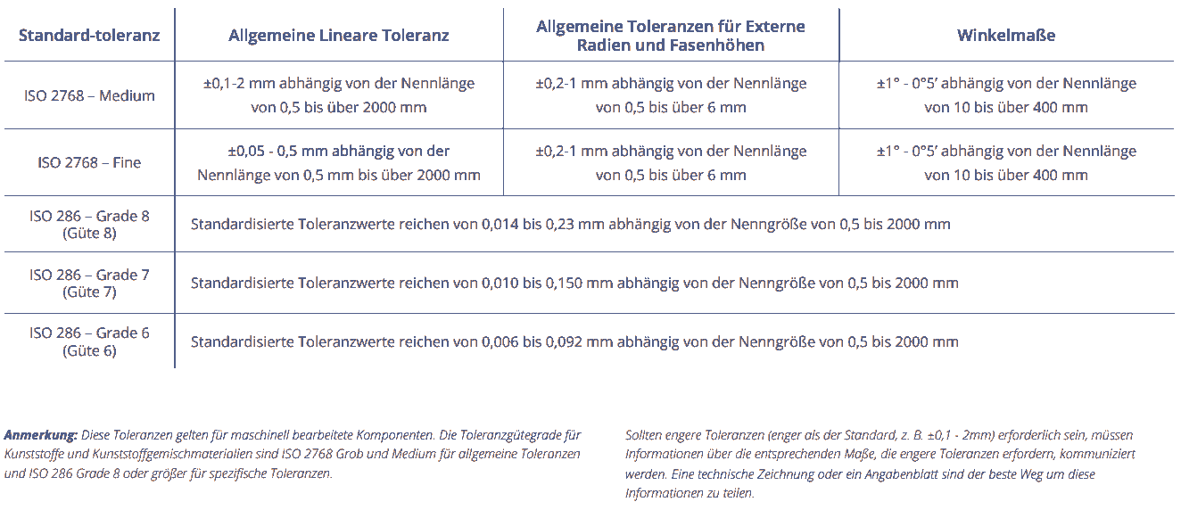 Soweit es nicht anders durch den Konstrukteur spezifiziert wird, wird Xometry die Industriestandards ISO 2768 und ISO 286 für die folgenden Toleranzen verwenden: