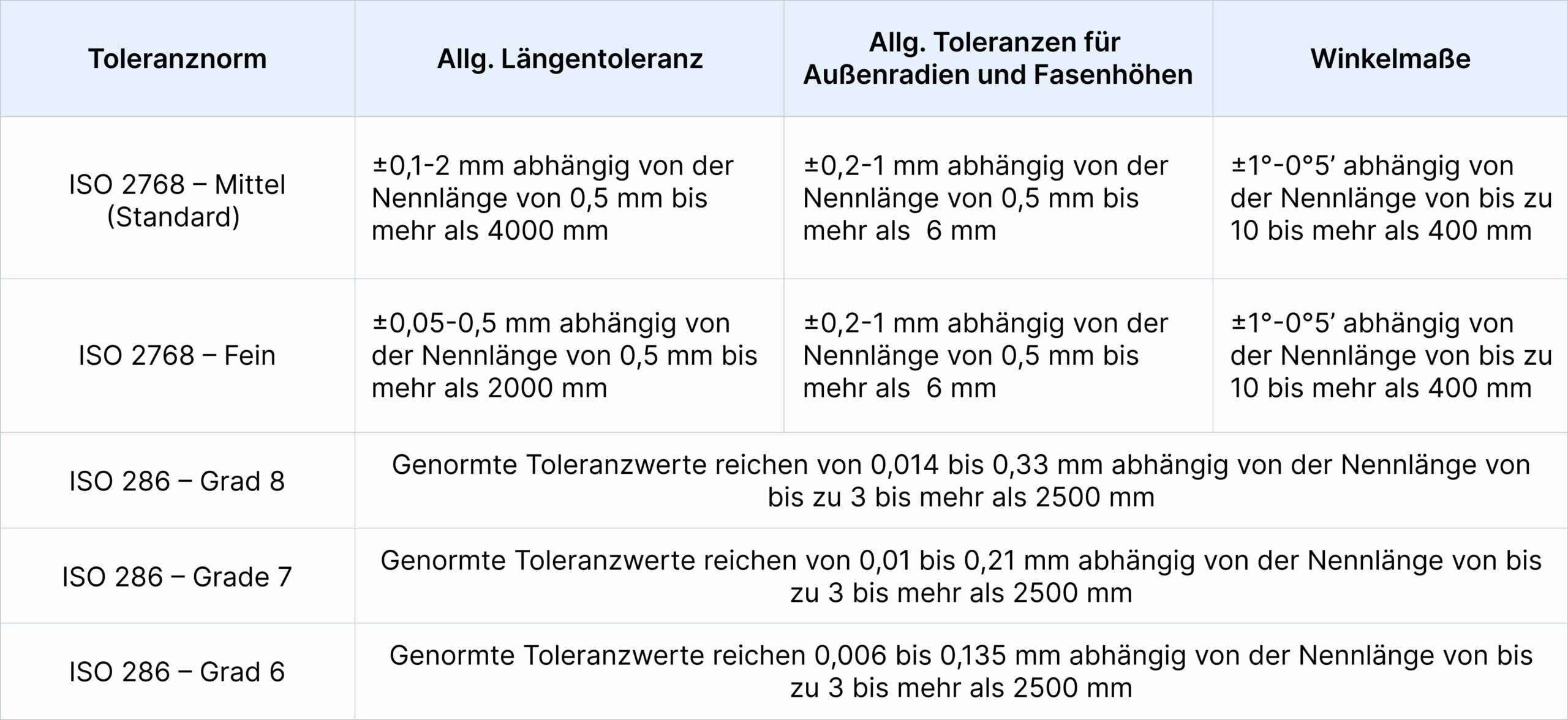ISO 2768 Toleranzen