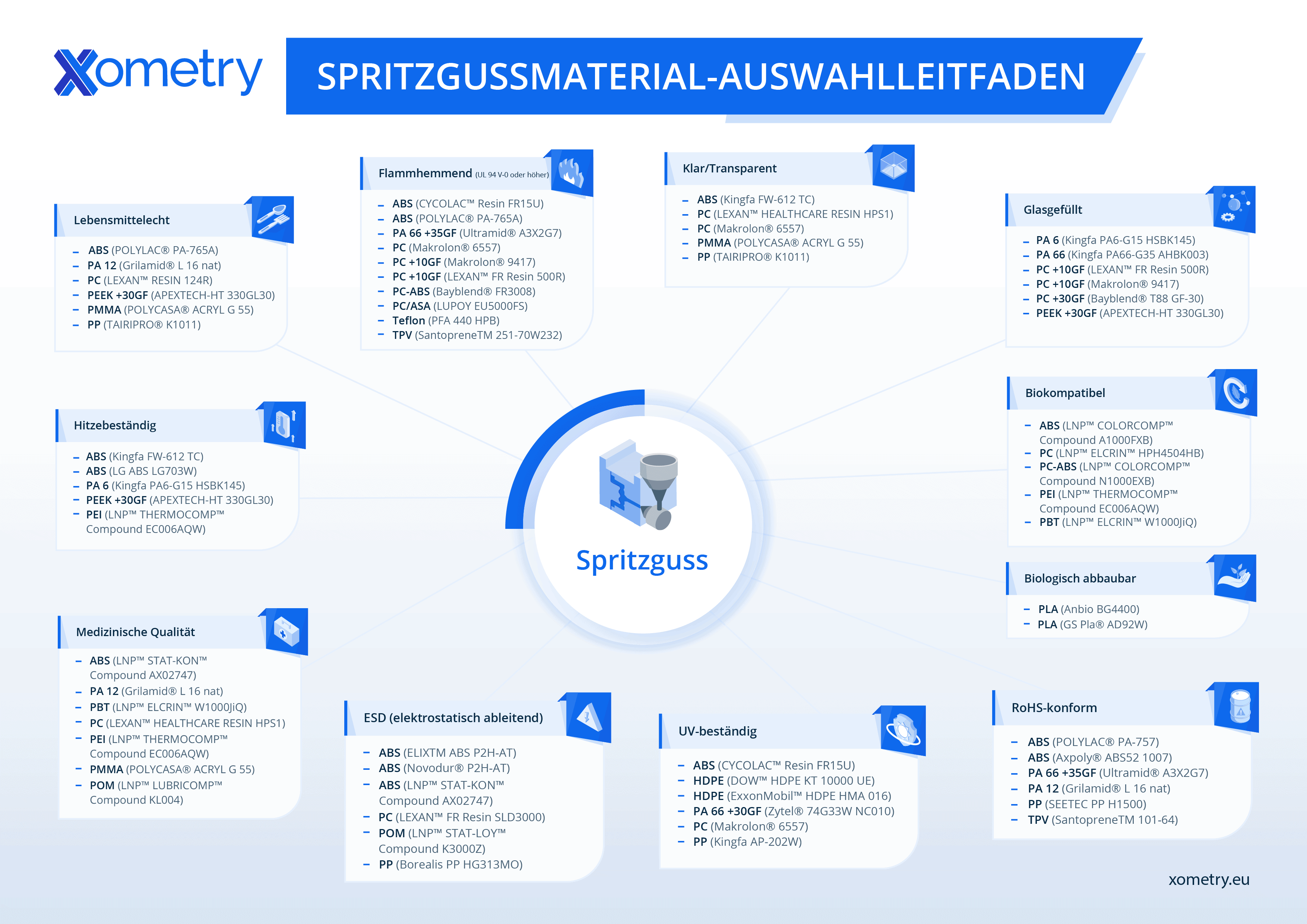 Um Ihnen den Auswahlprozess zu erleichtern, haben wir die Materialien nach ihren wichtigsten Eigenschaften organisiert – Hitzebeständigkeit, Lebensmittelsicherheit, UV-Stabilität und mehr – in einem klaren, leicht verständlichen Leitfaden. Betrachten Sie ihn als Ihre praktische Entscheidungshilfe, die Zeit und Mühe spart, während Sie Ihr nächstes Projekt planen.
