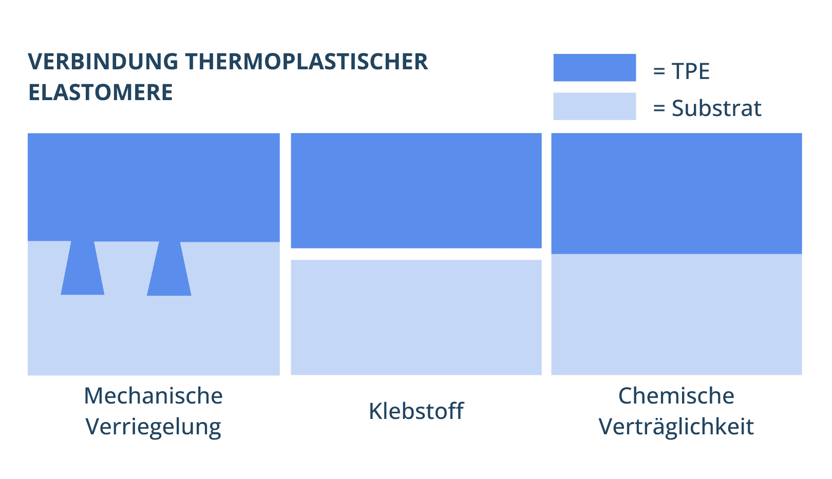 Die folgende Tabelle zeigt einen Vergleich zwischen den gängigsten Substraten, ihren Schlüsseleigenschaften und ihrer Kompatibilität im Hinblick auf die Verbindung mit TPE: