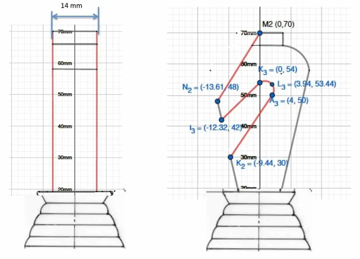 E : Da ich die Originalzeichnungen nicht bei mir hatte und ich bereits eine Reihe von Teilen besaß, habe ich die Maße der vorhandenen Teile genommen und die fehlenden Teile von Hand nachgezeichnet, wobei ich die Anforderungen der von Ihnen verwendeten CNC-Maschinen berücksichtigt habe. Eine Linie von Hand reicht nicht aus, während zwei Punkte einer Ellipse, für welche die Brennpunkte bekannt sind, Daten sind, die in die CNC-Maschinen eingegeben werden können.