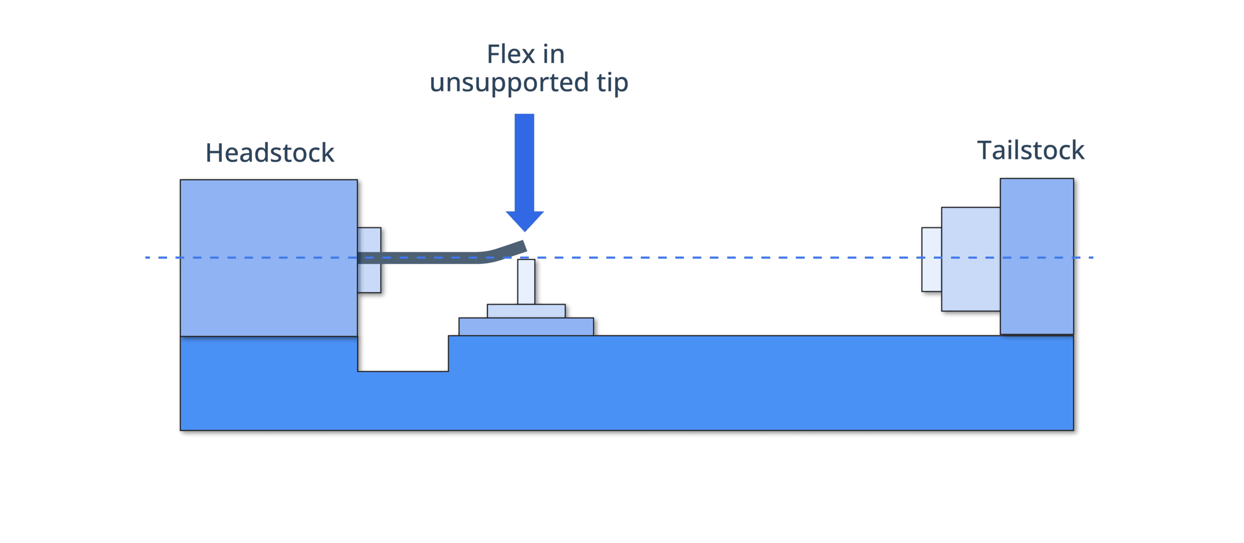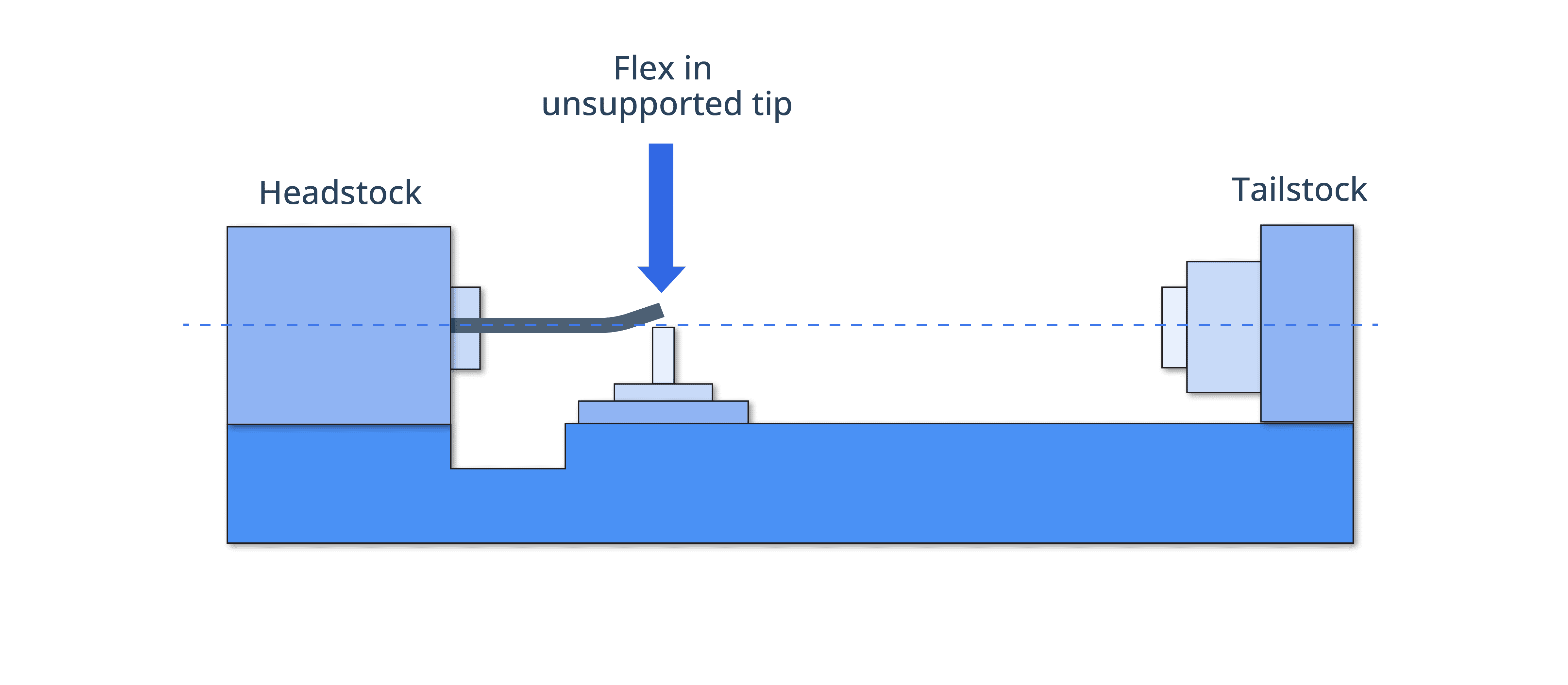In typical CNC lathe operations, the workpiece is secured in the headstock and supported by the tailstock. However, for certain tasks, the workpiece is only mounted in the headstock. In these cases, the material type and thickness determine the allowable length of the workpiece, as excessive length can cause flexing and potential issues.