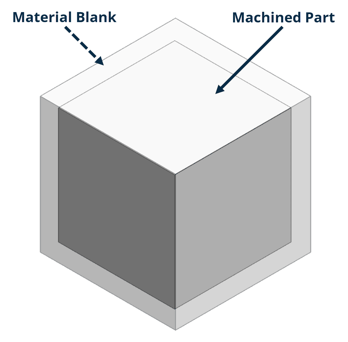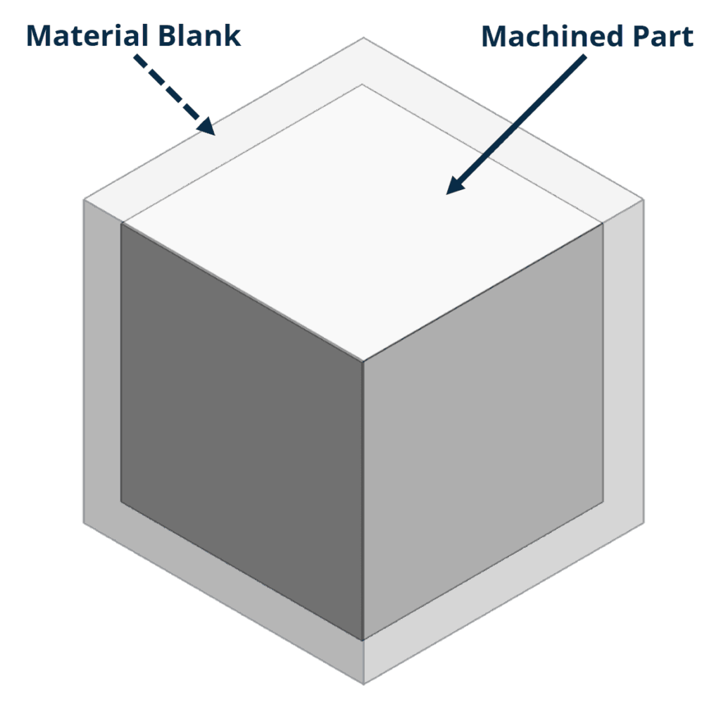 This refers to the size of the raw material used to create the finished part. Material blanks typically need to be slightly larger than the finished part’s measurements to allow for variations and to cut away rough faces of the raw material.