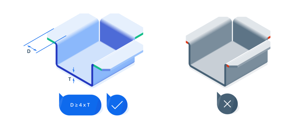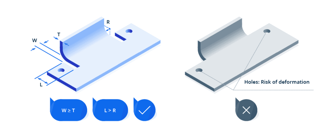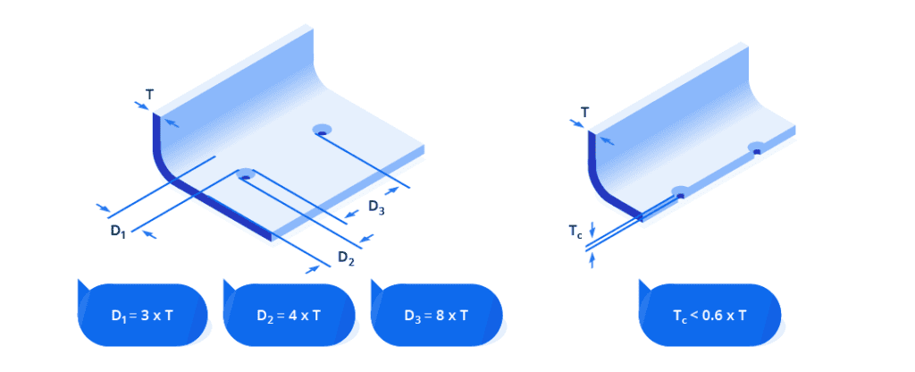 To ensure a trouble-free bend and to avoid deformation in sheet metal fabrication, we recommend following certain design tips for every type of sheet metal part feature.
