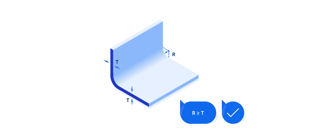 We typically recommend that the smallest bend radius should at least be equal to the sheet thickness.
