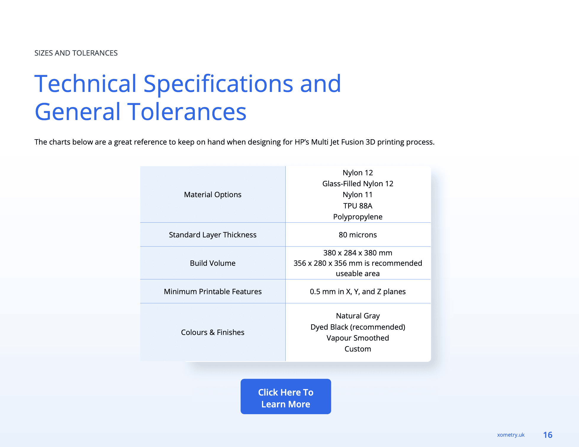 With all of today’s innovative Multi Jet Fusion 3D printing capabilities, it’s important to understand the strengths and trade-offs of this process. Download our guide for HP MJF manufacturability recommendations to optimize your designs and lower your costs.