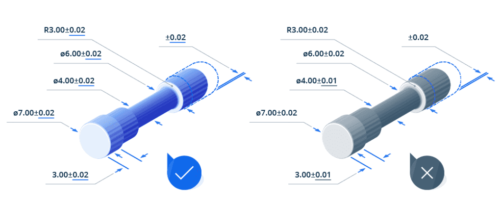 - Apply tight tolerances (e.g., ±0.01 mm) only to features like mating/critical surfaces or alignment points.