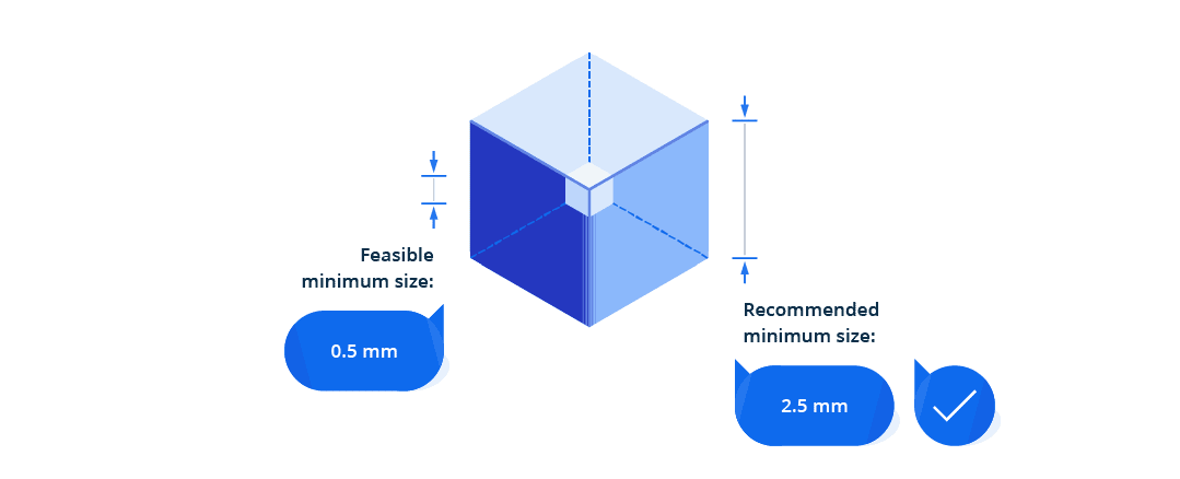 - Redesign parts to eliminate features smaller than 2.5 mm where possible.