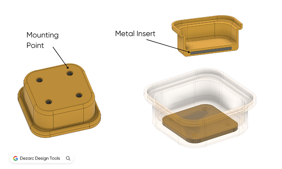 - Maintaining insert position: During the molding process, securing the position of the insert is crucial. This is typically achieved by using compression molds pin that hold the insert externally, leading to a section that remains unfilled.
