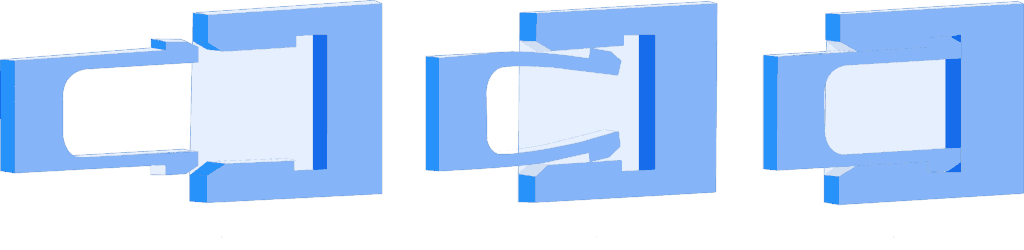- Applications: Particularly useful in packaging and product enclosures that require flexibility or misalignment tolerance during assembly. They are often used in clamp-like mechanisms in assemblies where parts must be snapped together under less-than-ideal alignment conditions.