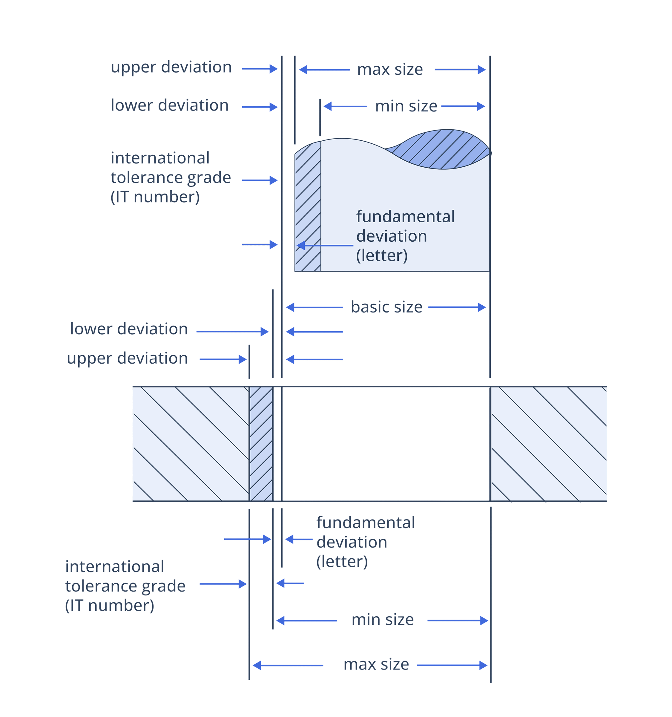 - Hole Basis System: The hole’s minimum size is kept constant at the nominal dimension (denoted by an uppercase H). The size of the shaft is varied to achieve the desired fit.