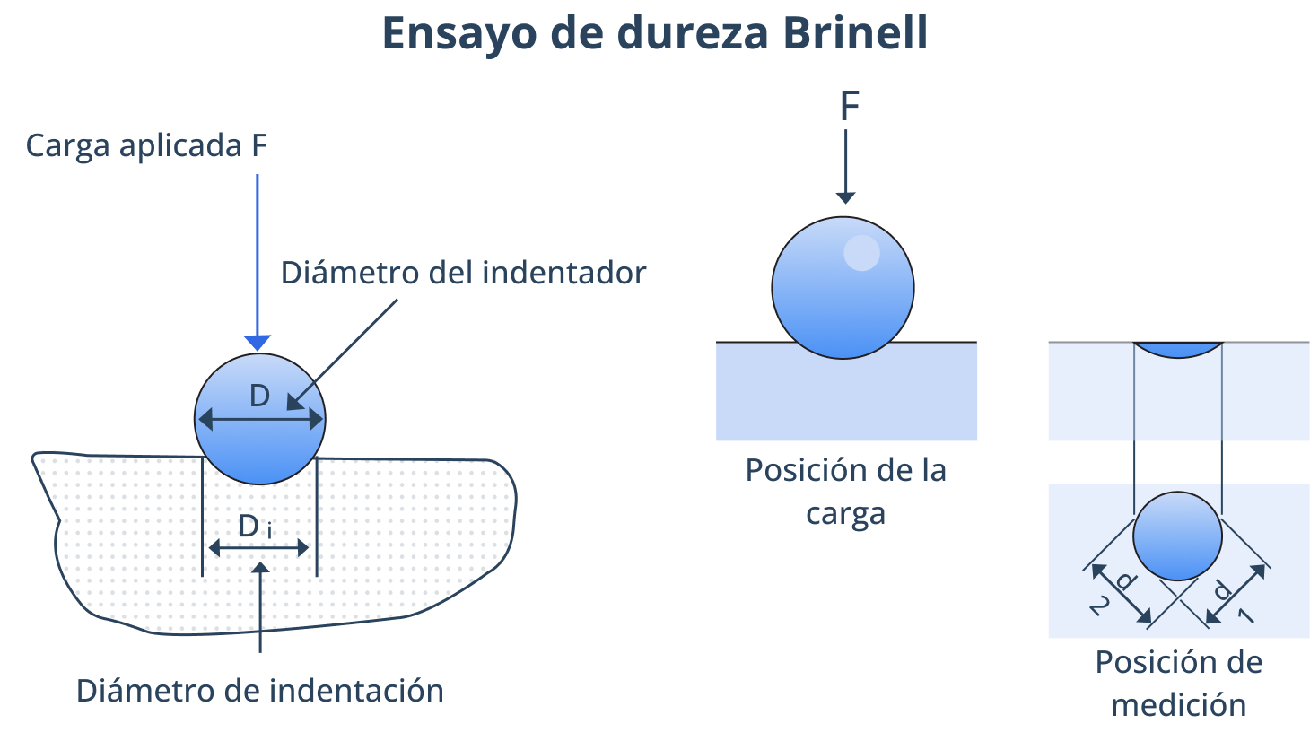 Una vez retirada la carga, se mide el diámetro de la muesca con un microscopio. El número de dureza Brinell se calcula en función de la carga aplicada y de la superficie de la indentación; los diámetros más grandes indican materiales más blandos y los diámetros más pequeños, materiales más duros.