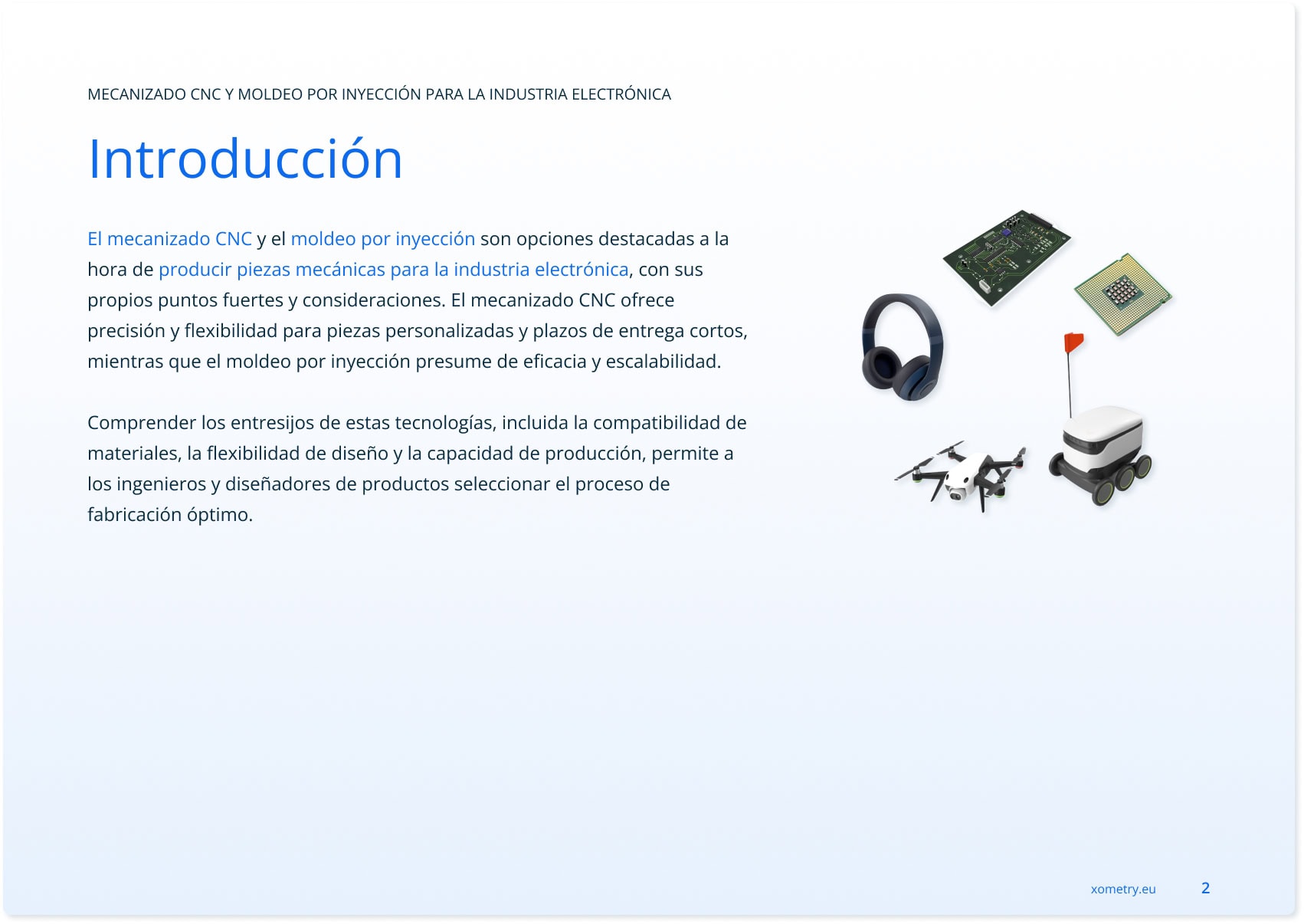 Descubra la visión de los expertos sobre los procesos de fabricación que impulsan la industria electrónica. Este libro blanco ofrece una comparación detallada entre el mecanizado CNC y el moldeo por inyección, destacando las ventajas y limitaciones de cada uno. Aprenda a elegir el proceso adecuado en función del volumen de producción, la precisión y la rentabilidad para optimizar su próximo proyecto de electrónica.