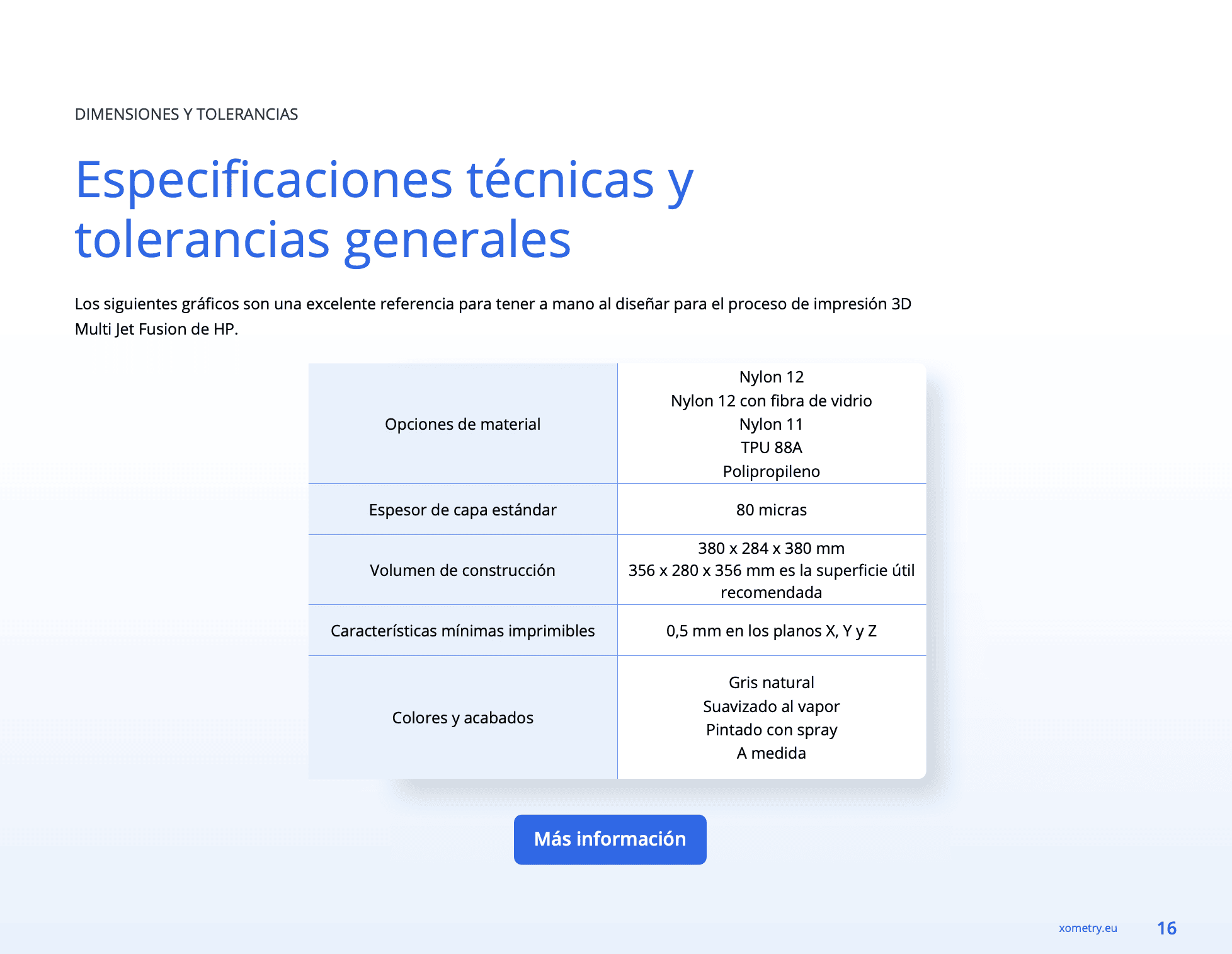 - Especificaciones técnicas de los materiales de HP Multi Jet Fusion