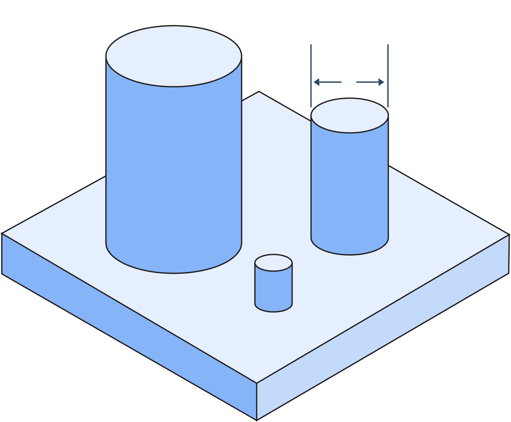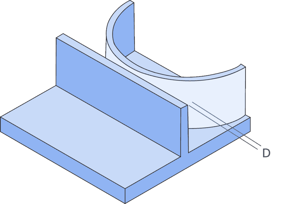Un pont en DMLS est une surface plane orientée vers le bas, supportée par deux éléments ou plus. En raison des contraintes thermiques liées au chauffage et au refroidissement rapides du procédé DMLS, si la distance non supportée d’un pont est trop longue, cela peut entraîner une mauvaise qualité des surfaces orientées vers le bas et compromettre l’intégrité structurelle.