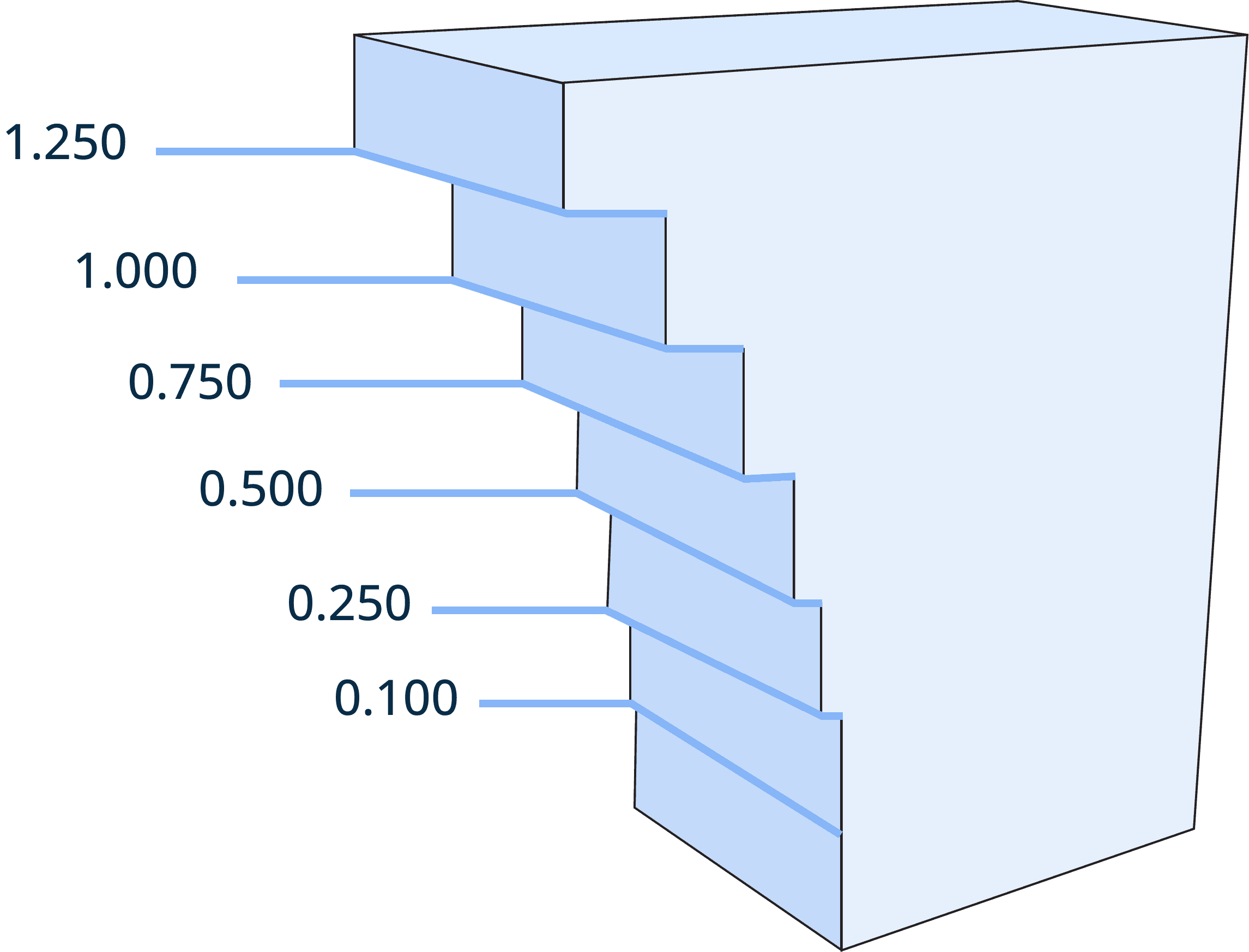 Les surplombs sont des changements brusques dans la géométrie d’une pièce, différents des angles autoportants, qui présentent des pentes plus douces. Les surplombs supérieurs à 0,5 mm nécessitent habituellement des supports supplémentaires pour empêcher les dommages et les déformations pendant l’impression. Il est conseillé de ne pas aller au-delà des limites avec de grands surplombs, car cela peut conduire à une finition de surface plus rugueuse, une résolution réduite, voire même un échec complet de l’impression.