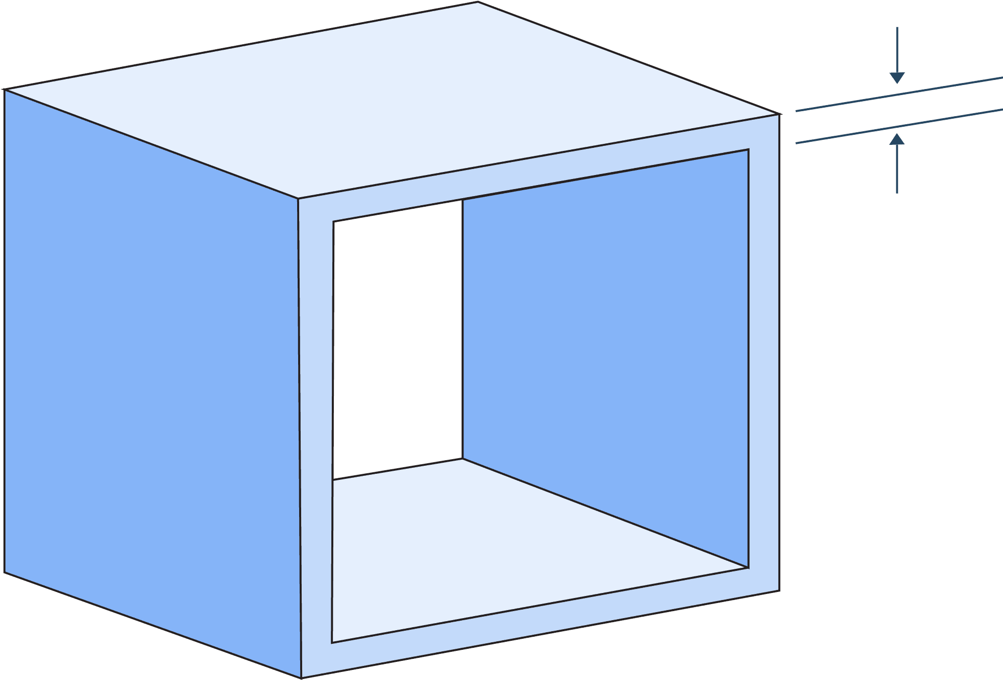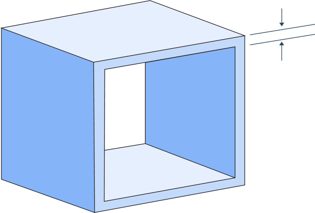 - Utilisez une épaisseur de 1 mm pour les parois supportées (connectées à deux côtés ou plus) et de 1,2 mm pour les parois non supportées (connectées à un seul côté ou bord) afin d’assurer la stabilité structurelle et la précision d’impression.