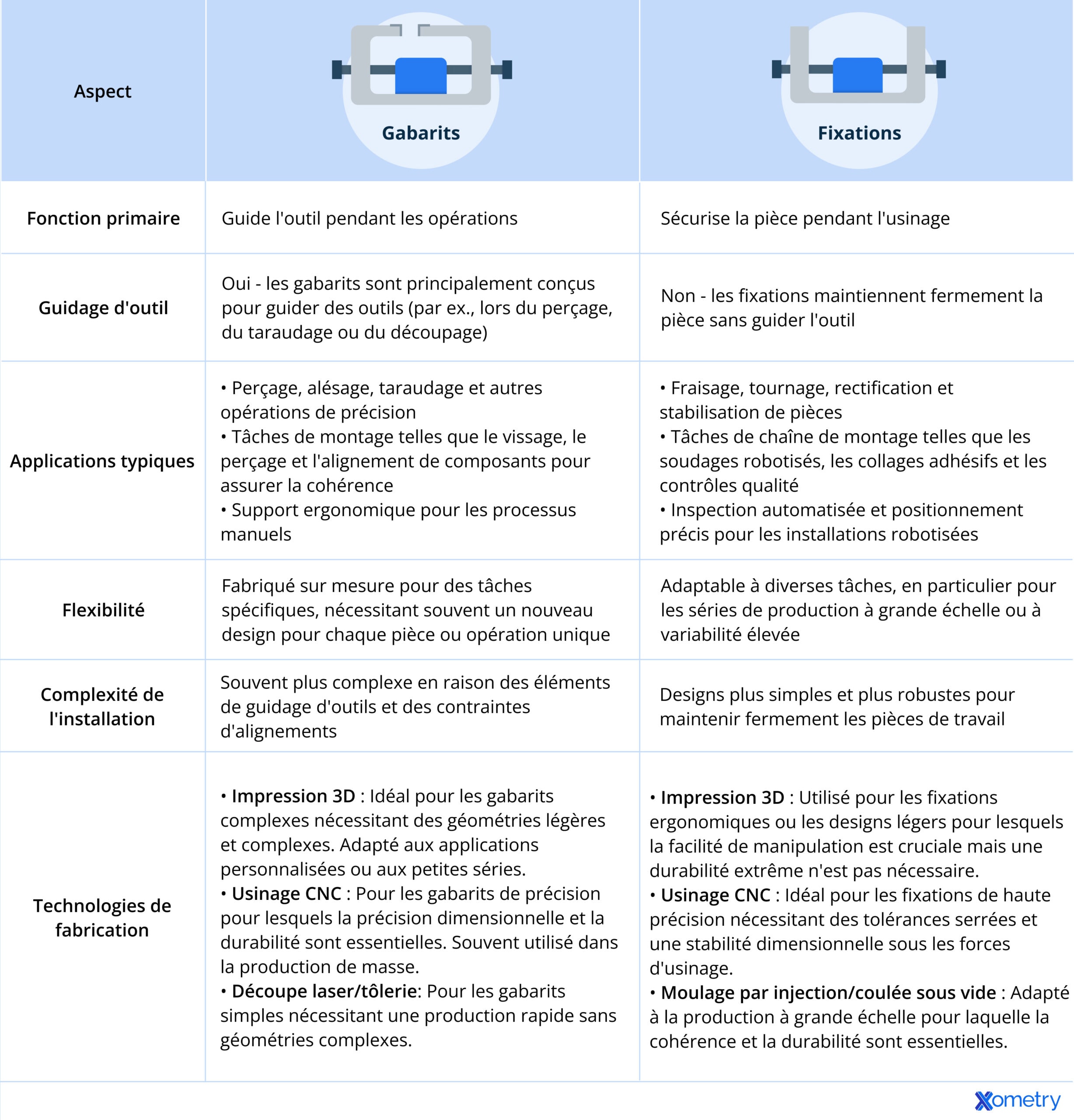 Guide de référence rapide : différences clés entre les gabarits et les fixations