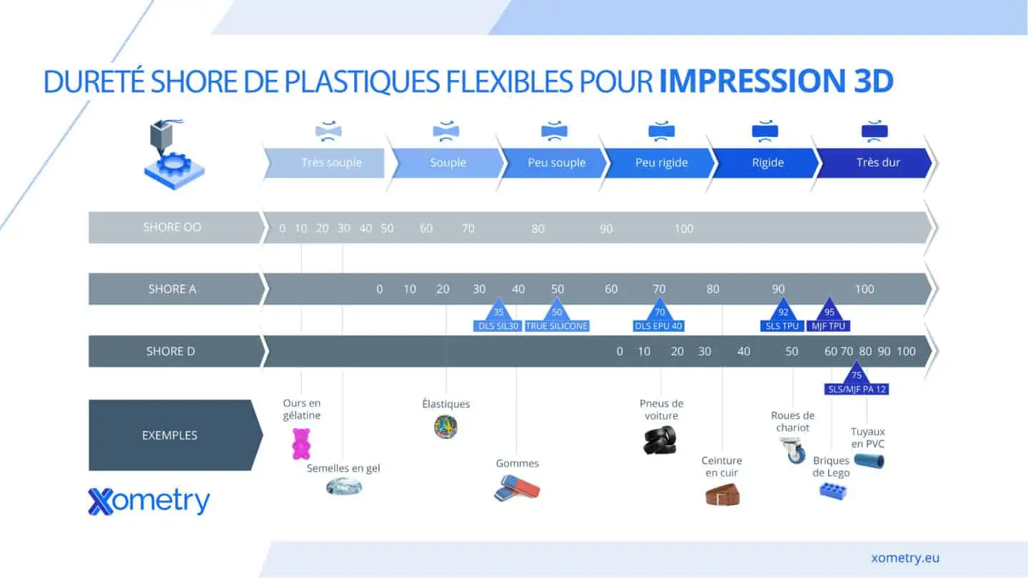 Indicateurs de dureté Shore de différents matériaux d’impression 3D