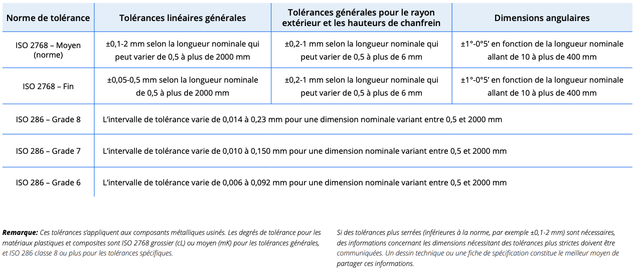 Sauf indication contraire du designer, Xometry appliquera les tolérances standard de l’industrie ISO 2768 et ISO 286 listées ci-dessous :