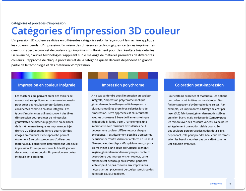 Avec toutes les avancées de l'impression 3D couleur aujourd'hui, il est important de comprendre les avantages et les inconvénients de ce processus. Téléchargez notre guide de conception sur l'impression 3D couleur pour optimiser vos designs et diminuer vos coûts.