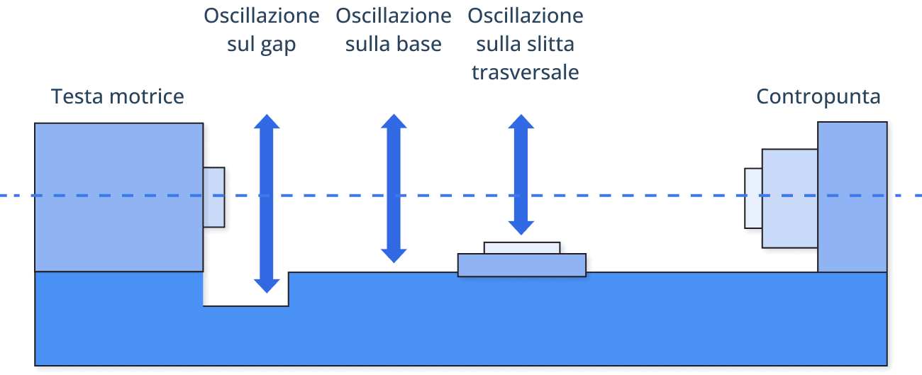 Oscillazione sopra la base, su slitta trasversale e sul gap