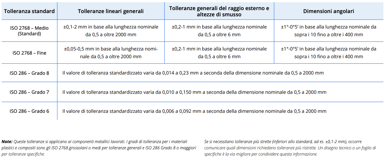 Salvo diversa indicazione specifica del progettista, Xometry rispetterà le tolleranze standard a norma ISO 2768 e ISO 286 elencate di seguito:
