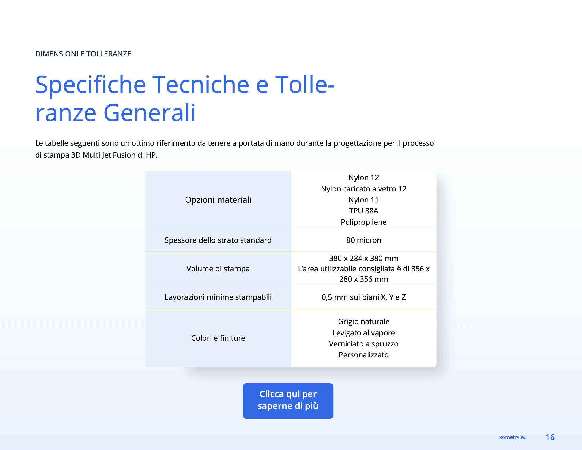 • Specifiche tecniche per i materiali HP Multi Jet Fusion