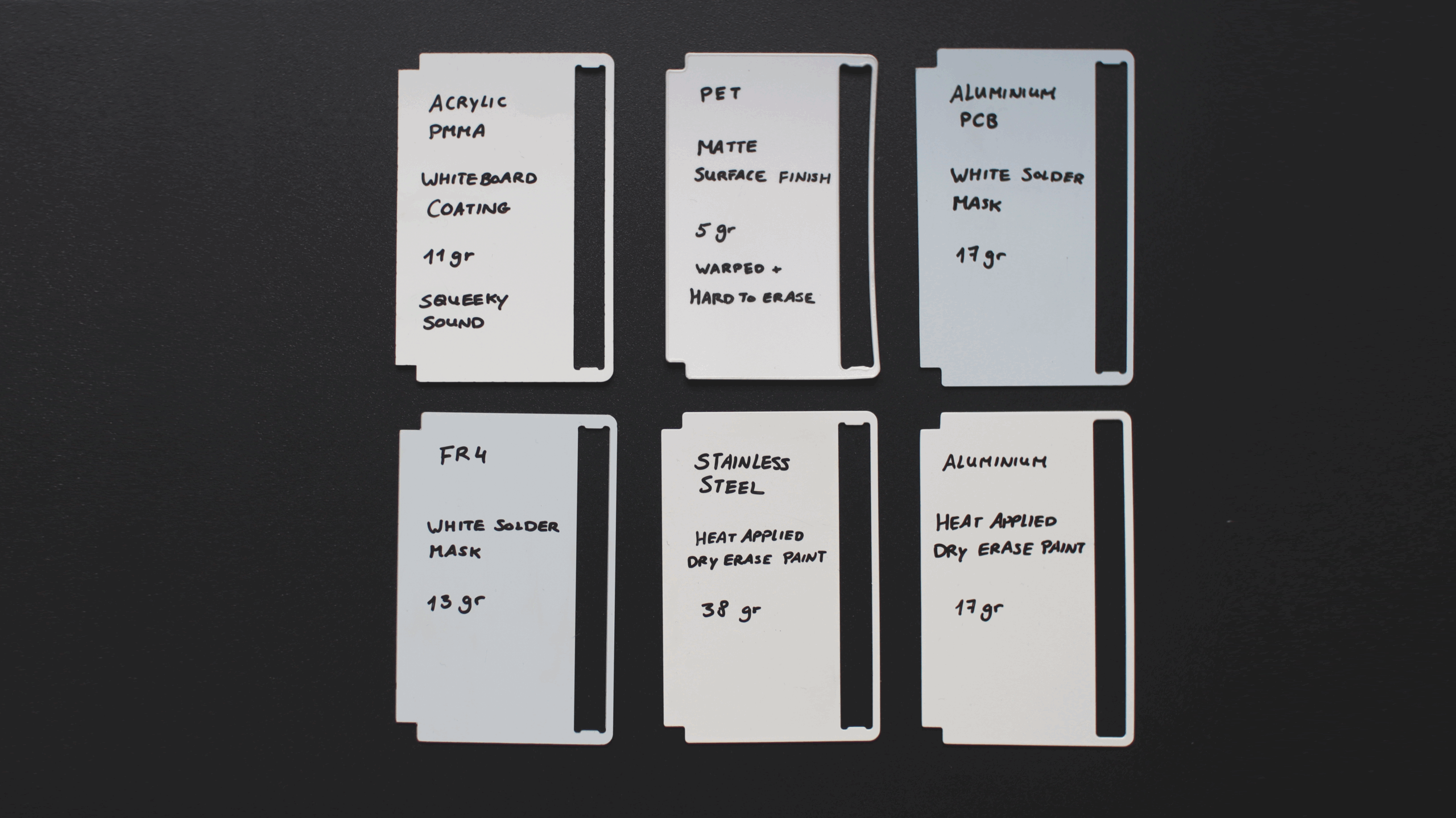 - Perfezionare la superficie della lavagnetta: volevamo che la lavagnetta fosse facile da cancellare, leggera ed estremamente duratura. Non è stato semplice applicare l’apposita vernice all’alluminio, perciò abbiamo sperimentato con diversi materiali e rivestimenti. Dopo vari tentativi, abbiamo sviluppato una procedura che prevedeva l’applicazione a caldo del rivestimento e un processo di elettroforesi in più fasi. Così facendo abbiamo ottenuto una superficie perfetta per la scrittura e facile da cancellare.